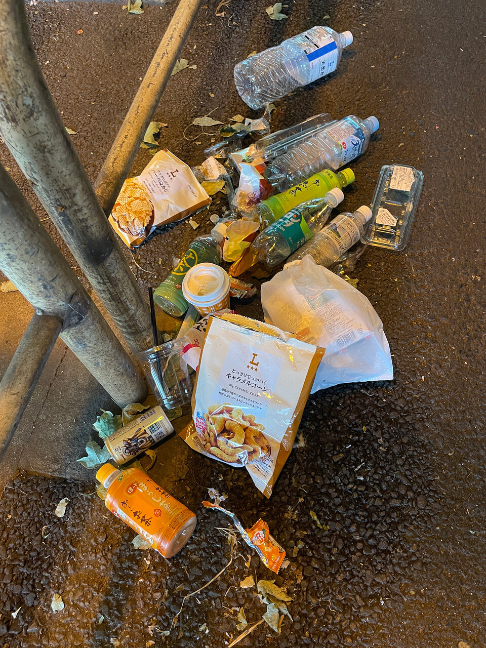 路上で宴会をして、そのまま置いていかれたかのようなゴミのあり様。