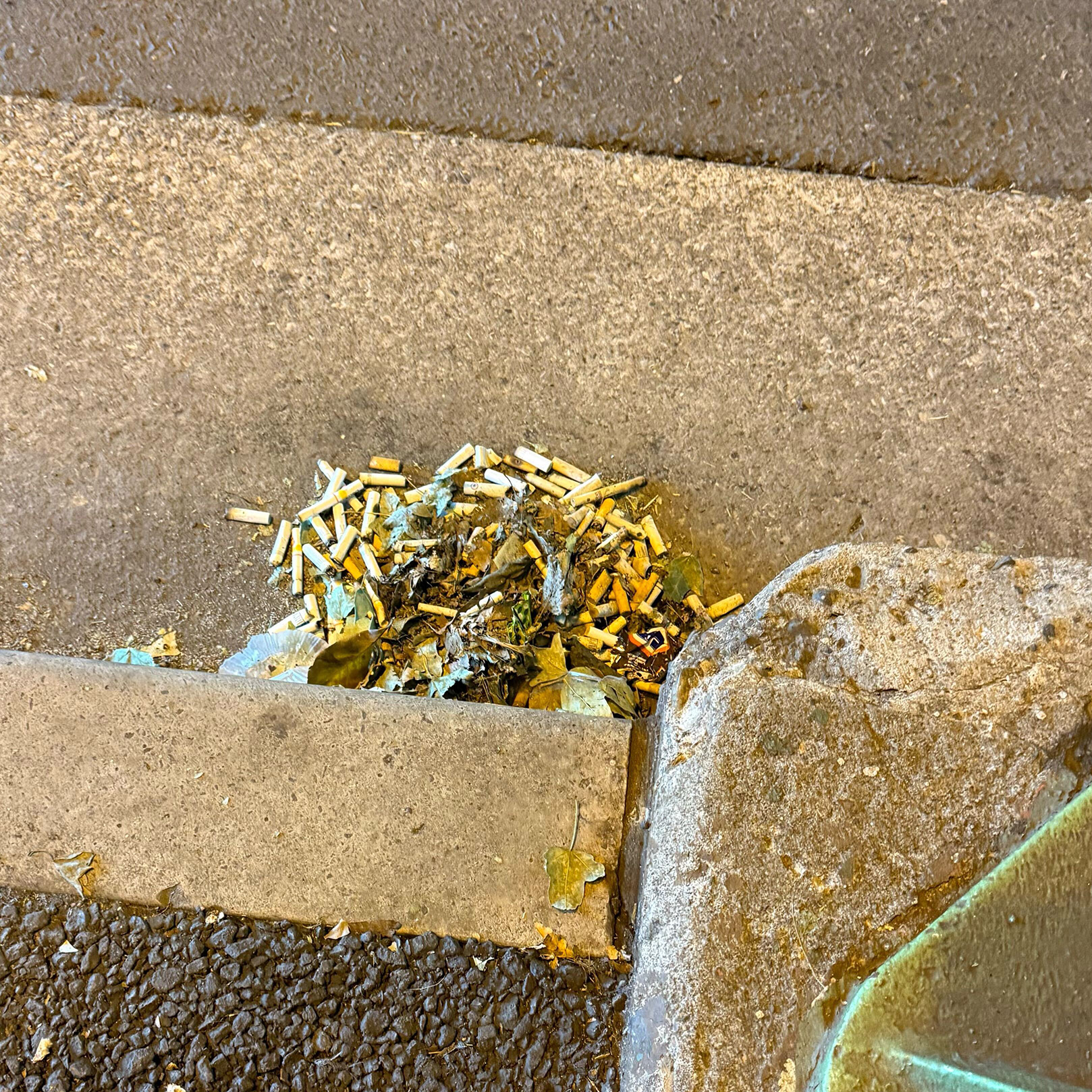 道路脇にはタバコの吸い殻が大量に…。