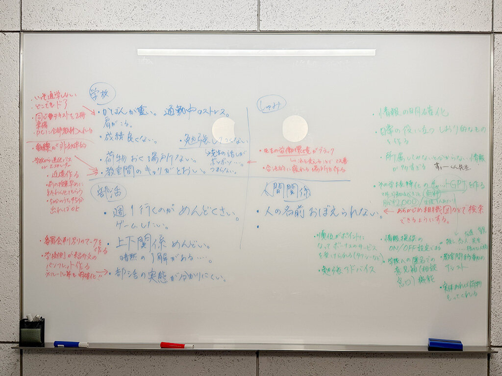 「課題解決」と聞くと堅苦しく感じがちですが、あくまでテーマは“自分たちの日常”。高校生たちは、普段の生活を思い浮かべながら、自由に意見を出していきます。