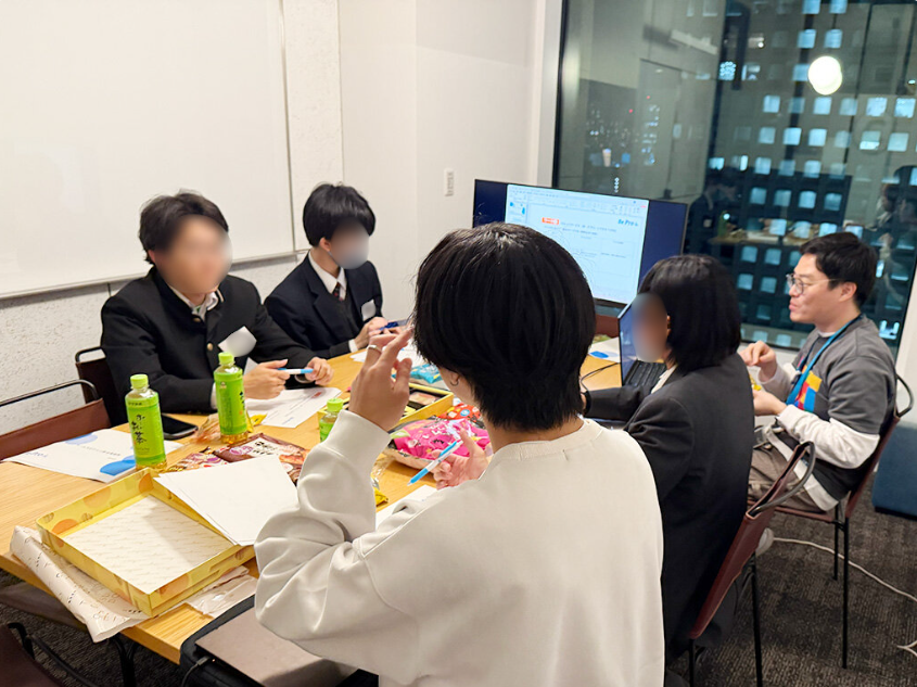 お菓子を囲んでのリラックスした雰囲気の中、他チームの発表に対して「それ分かる!」「うちの学校でも同じ!」といった共感の声や、素直な質問が次々と上がりました。