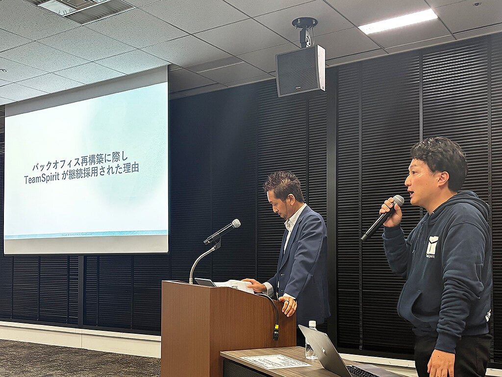 OBCさまのパートナー企業による事例発表では、株式会社こだわりのDXソリューション部 内藤部長より、大手・中堅企業における「奉行V ERPクラウド※」と「TeamSpirit」の連携導入についての具体的な事例が発表されました。
