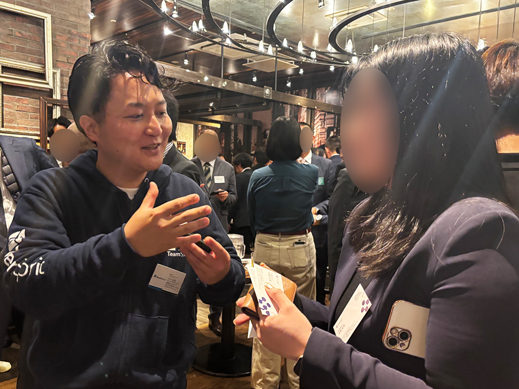 ここでも小川さんはフル稼働!多くのパートナー企業と積極的に名刺交換を行い、「中堅企業さまへの提案でどう連携できるか」、「コンポーザブルERPの強みとしてのTeamSpirit活用方法は」といった具体的なビジネスの話に花を咲かせました。
