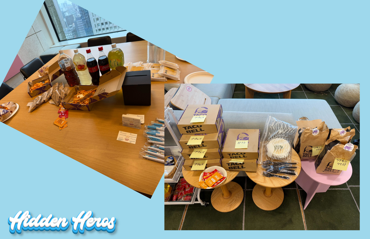 そんな想いから2月のランチタイムに、社内懇親会「WAIGAYA」で、Salck上で感謝を伝え合う「TACOS」※をリアルな形で届ける企画を実施しました。