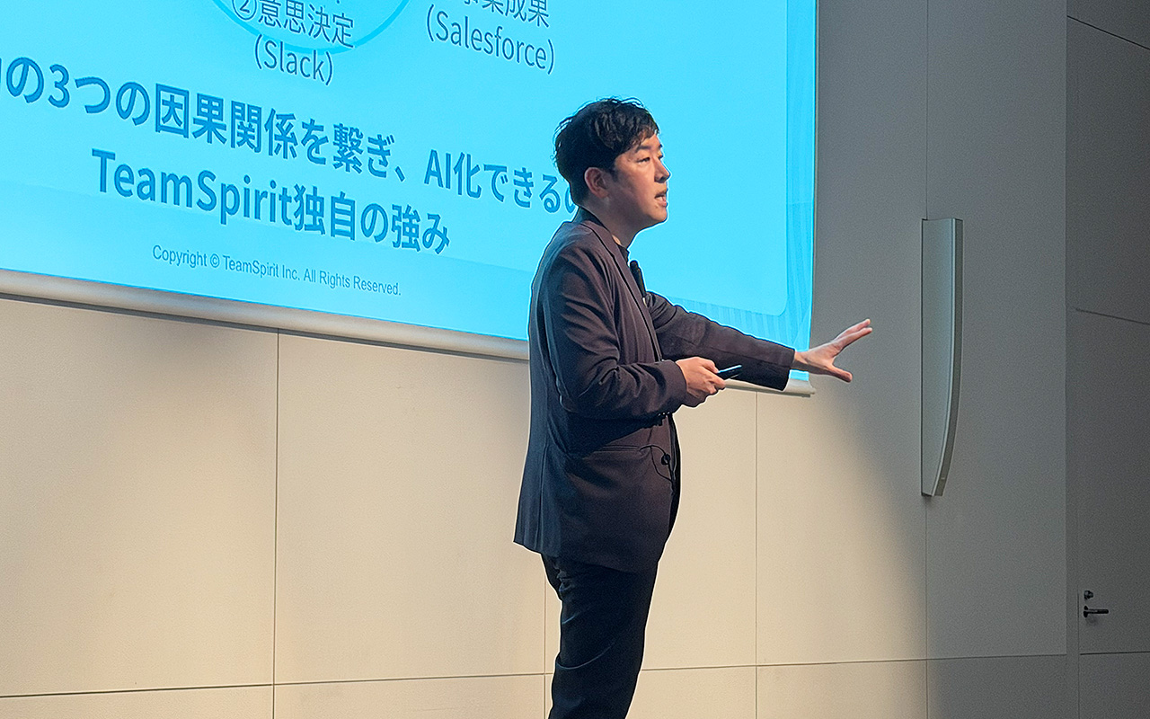 原さんからは、「エンタープライズ事業部が挑戦し続けられたのは、中小企業向け「TeamSpirit」(通称「V5」)が、長年製品を磨き続け、販売し、お客さまに信頼されてきた歴史があるからです」と、TSPへの深い感謝が述べられました。