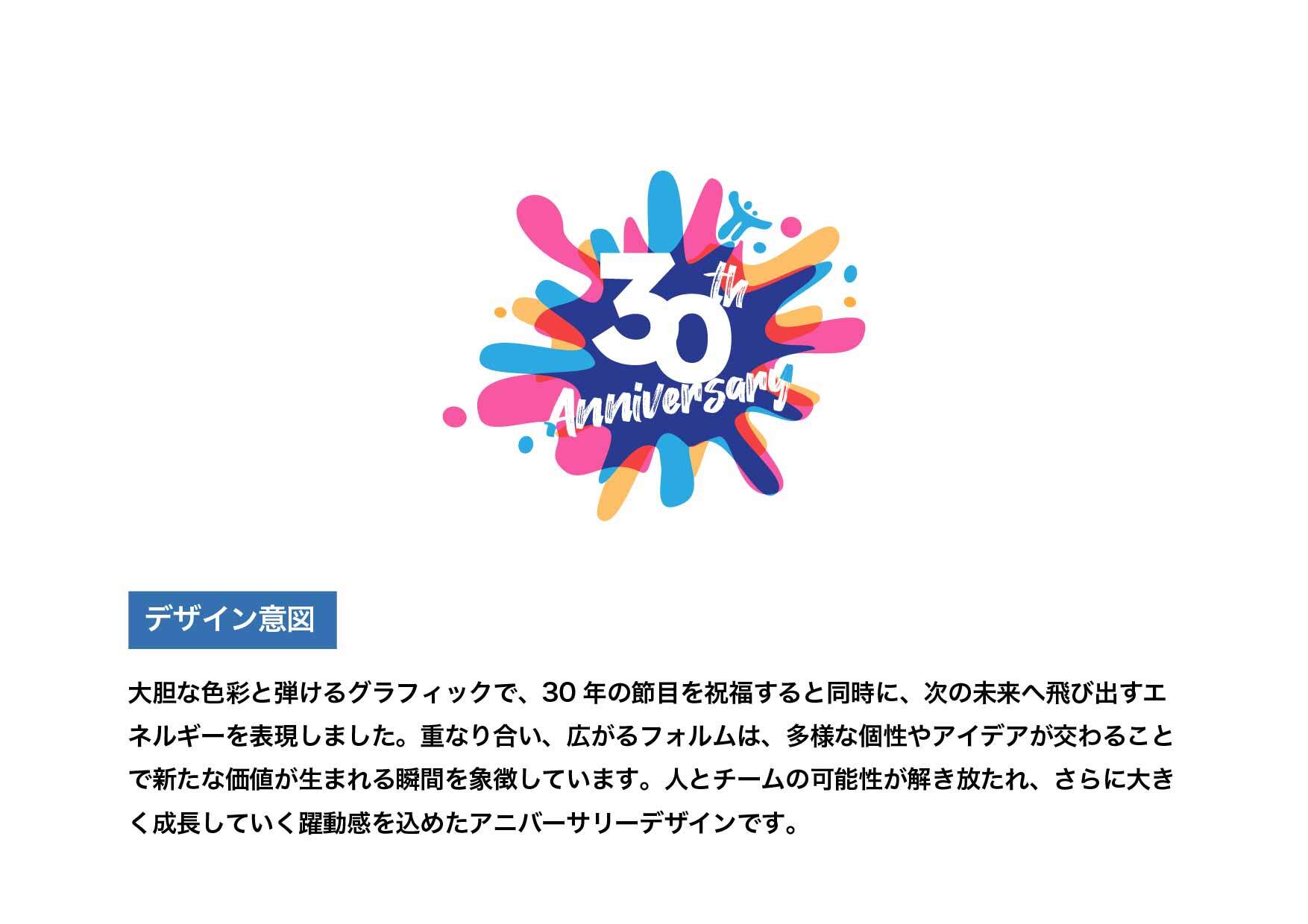 今回、公募された中から選ばれた30周年記念ロゴは、プロダクトオペレーション本部 本部長の手島健志さんと、チームスピリットのパートナー企業である株式会社モアアジアのデザイナー・篠宮莉世さんが共に創りあげたデザインでした。